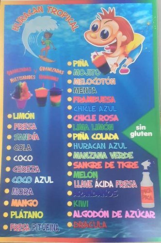 30 sabores con pica pica ácido de regalos sus sabores te sorprendera ven disfruta del sabor de las granizadas huracan tropical.